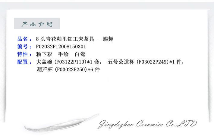8頭青花釉里紅茶具蝶舞