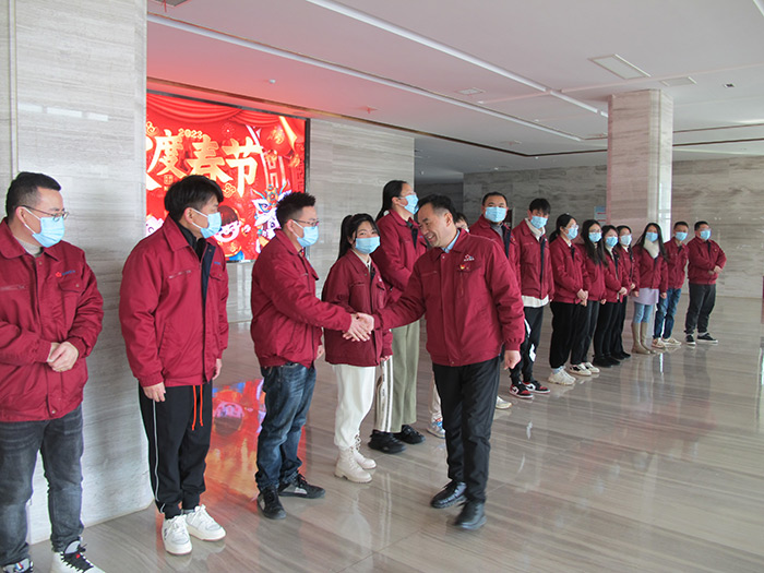 “同志們!給大家拜年了!”“新春快樂!兔年大吉!”上午9時(shí),周敏建一行與各子公司員工互道兔年新春祝福,所到之處笑聲朗朗、祝福聲聲、掌聲連連……。集團(tuán)領(lǐng)導(dǎo)對(duì)各單位過去一年取得的成績(jī)給予充分肯定,對(duì)大家立足崗位、辛勤工作的付出表示感謝。