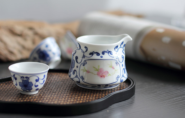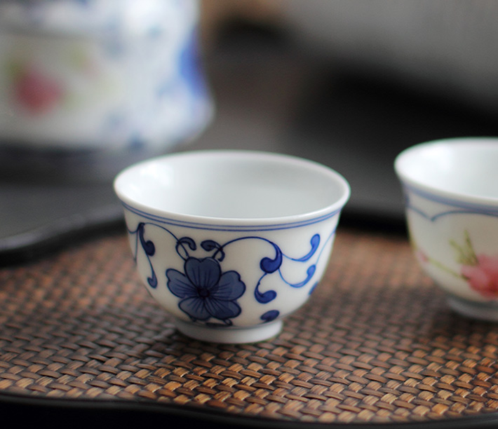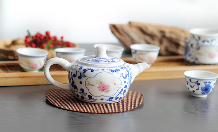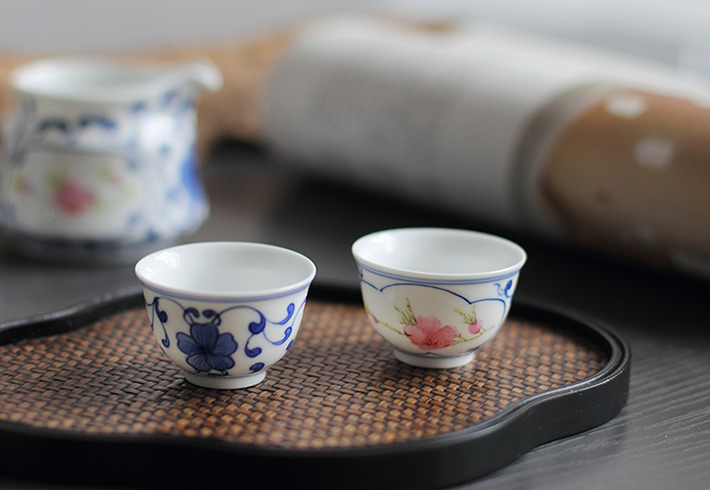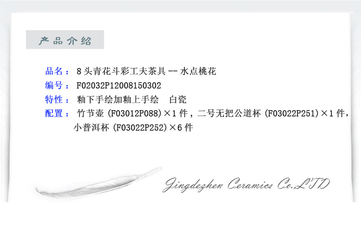 8頭青花斗彩功夫茶具水點(diǎn)桃花