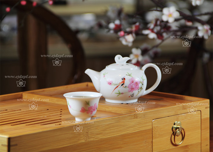 手繪功夫茶具(竹質(zhì)茶海)水點(diǎn)桃花