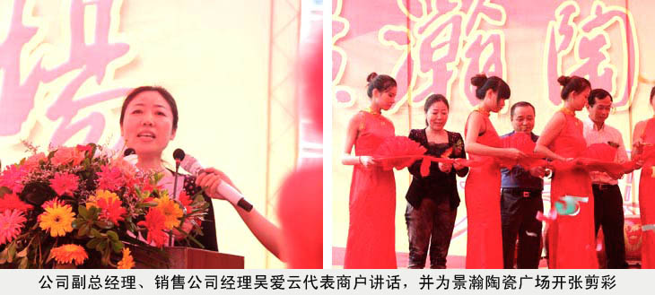 最后,預祝景瀚陶瓷廣場開業(yè)慶典圓滿成功,同時也誠摯地邀請在場的各位領導、各位嘉賓來我們公司本部參觀、指導。