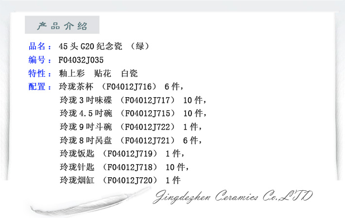 45頭G20紀念瓷(綠)